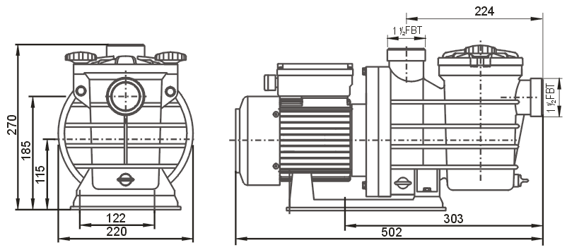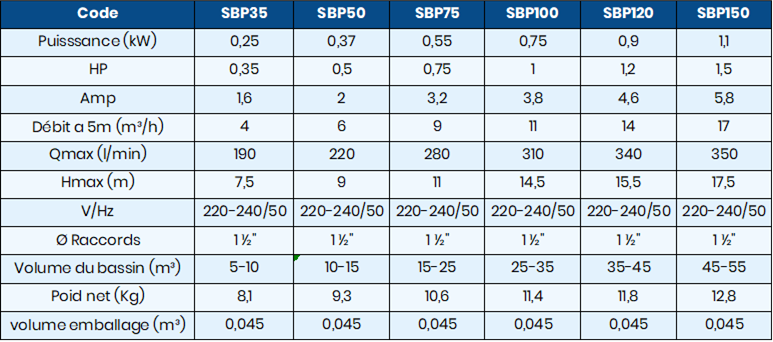 Pompe avec pré-filtre. Auto-amorçante. Monophase 220 volts 50 Hertz. 3 systèmes de fermeture au choix. Moteur 71 Frame. Pour piscines familiales.